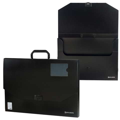 Портфель пластиковый BRAUBERG портфолио, А3, 445х310х30 мм, без отделений, черный, Россия, 226023