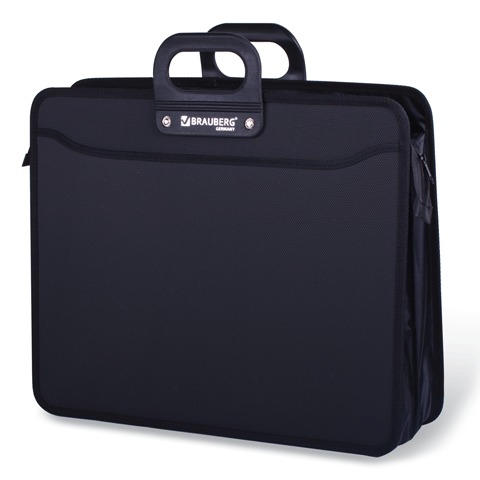 Портфель пластиковый BRAUBERG портфолио, А3, 470х380х130 мм, 3 отделения, на молнии, черный, 223081