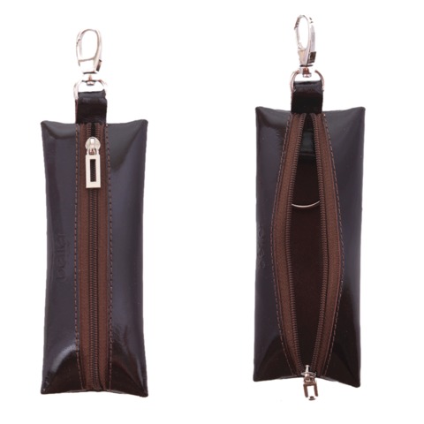 Футляр для длинных ключей прямоугольной формы выполнена из натуральной кожи. Закрывается на молнию. Внутри кольцо диаметром 22 мм на кожаной петле. С внешней стороны - карабин.