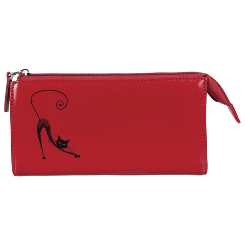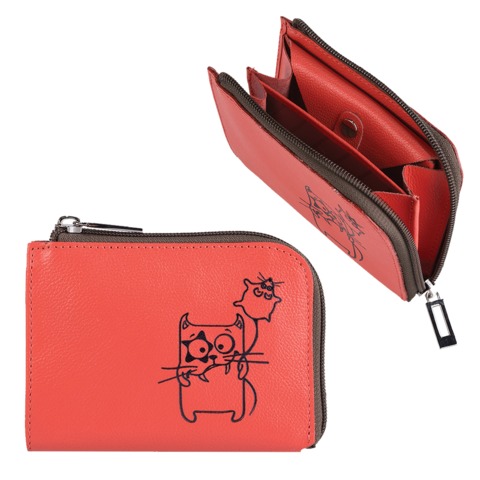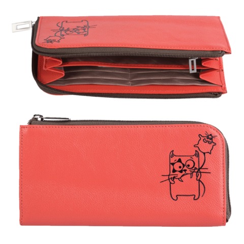 Портмоне женское BEFLER "Изящная кошка", натуральная кожа, молния, тиснение, 190х105 мм, красное, PJ.157.-1