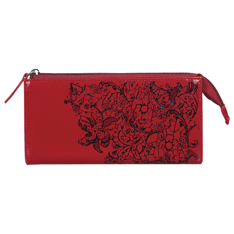 Портмоне женское BEFLER "Гипюр", натуральная кожа, молния, тиснение, 190х105 мм, красное, PJ.158.-1