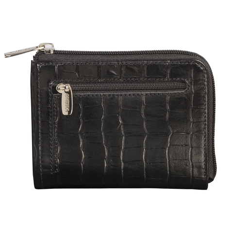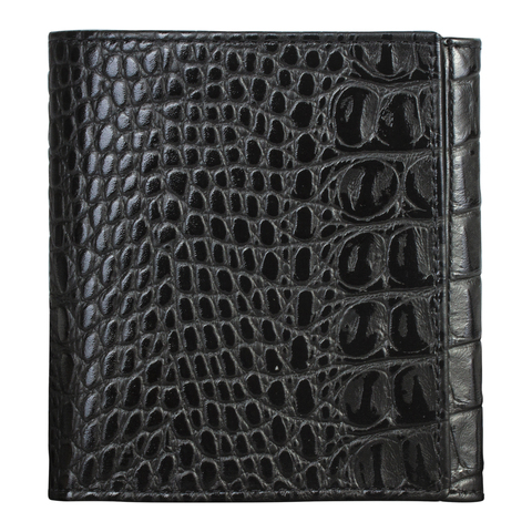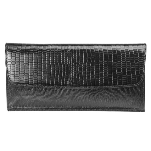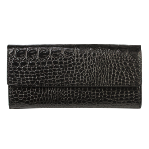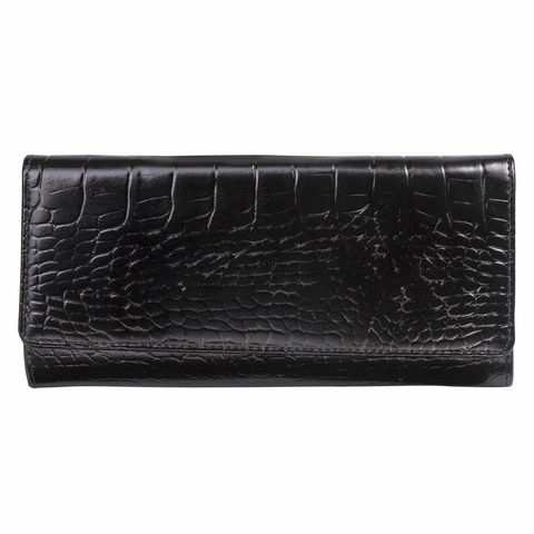 Портмоне женское FABULA "Croco Nile", натуральная кожа, кнопка, крокодил, 217х105 мм, черное, PJ.154.KR