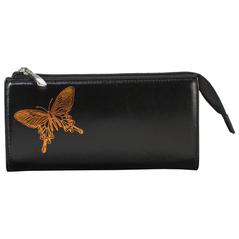 Портмоне женское BEFLER "Бабочка", натуральная кожа, молния, тиснение, 190х105 мм, черное, PJ.157.-11