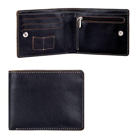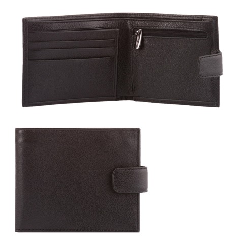 Портмоне мужское FABULA "Largo", натуральная кожа, застежка-кнопка, 125х97 мм, черное, PM.44.LG