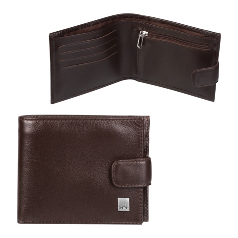 Портмоне мужское BEFLER "Грейд", натуральная кожа, на кнопке, 125х95 мм, коричневое, PM.39.-9