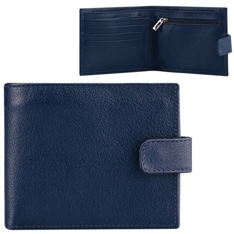 Портмоне мужское BEFLER "Грейд", натуральная кожа, на кнопке, 125х95 мм, синее, РМ.39.-9