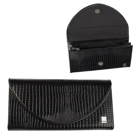 Портмоне женское BEFLER "Ящерица", натуральная кожа, магнитный замок, тиснение, 190х100 мм, черное, PJ.66.-3