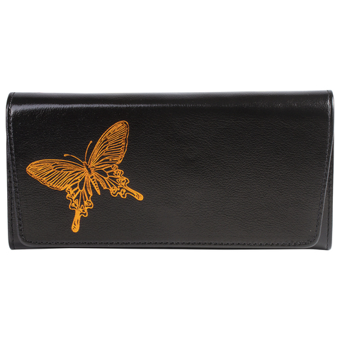 Портмоне женское BEFLER "Бабочка", натуральная кожа, кнопка, тиснение, 185х95 мм, черное, PJ.160.-11