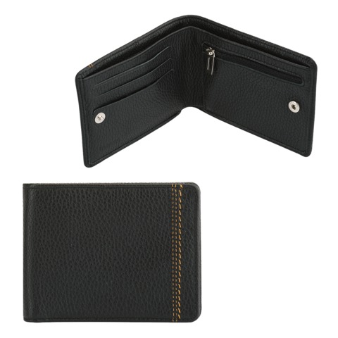 Портмоне мужское FABULA "Kansas", натуральная кожа, отстрочка, кнопка, 120х90 мм, черное, PM.27.TX