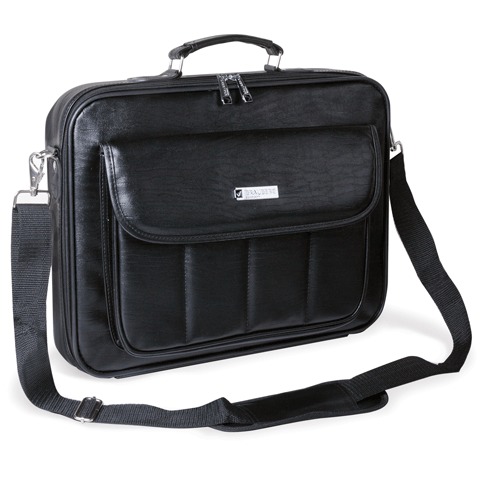 Строгая и элегантная сумка классической прямоугольной формы из высококачественной искусственной кожи черного цвета. Ориентированна на практичных, деловых людей. Открывается на 180º, при этом передняя стенка превращается в держатель для разных вещей.