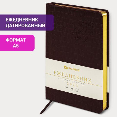 Ежедневник датированный 2023 А5 138x213 мм BRAUBERG "Comodo", под кожу, коричневый, 114016