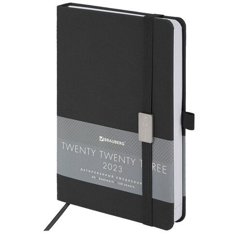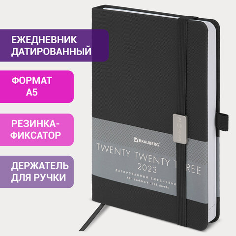 Ежедневник датированный 2023 А5 138x213 мм BRAUBERG "Control", под кожу, черный, 114094