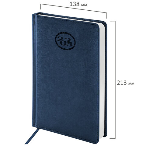 Ежедневник датированный 2023 А5 138x213 мм BRAUBERG "Favorite", под кожу, темно-синий, 114005