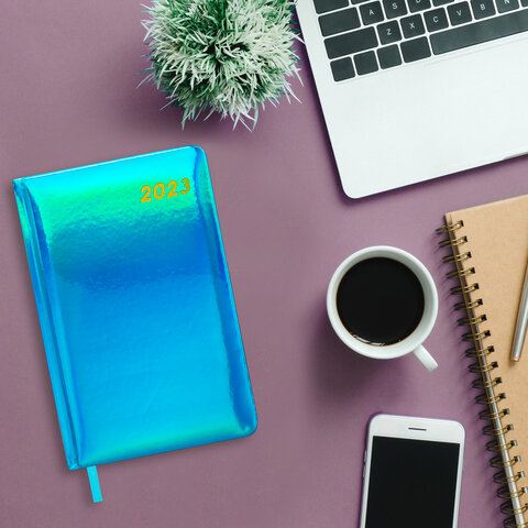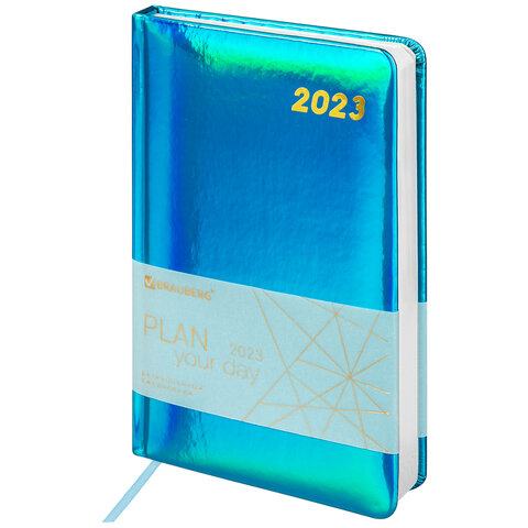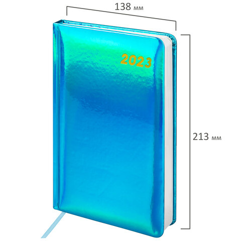 Ежедневник датированный 2023 А5 138x213 мм BRAUBERG "Holiday", под кожу, "зеркальный", бирюза, 114024
