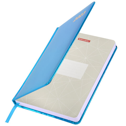 Внутренний блок включает 168 листов белой бумаги плотностью 70 г/м2. Каждая страничка имеет перфорированный угол. Благодаря стандартному формату А5 (138х213 мм) ежедневник удобно использовать как в офисе, так и на выездных деловых встречах. Твердая обложка стилизована под зеркальную кожу благородного бирюзового цвета. Подходит для горячего тиснения. Дополнением является закладка-ляссе, с помощью которой при необходимости можно быстро открыть ежедневник на нужной странице. Помимо прочего, ежедневник снабжен справочным материалом.