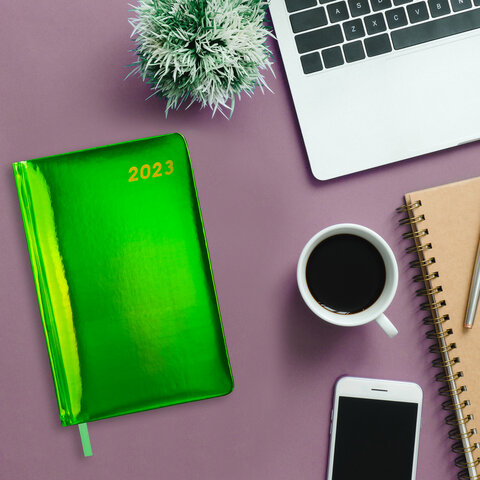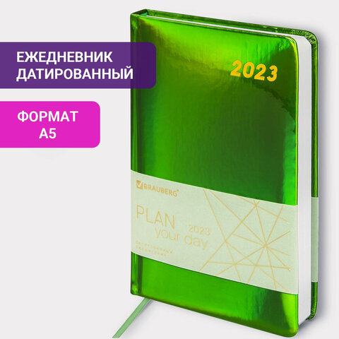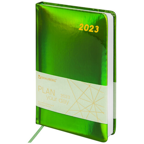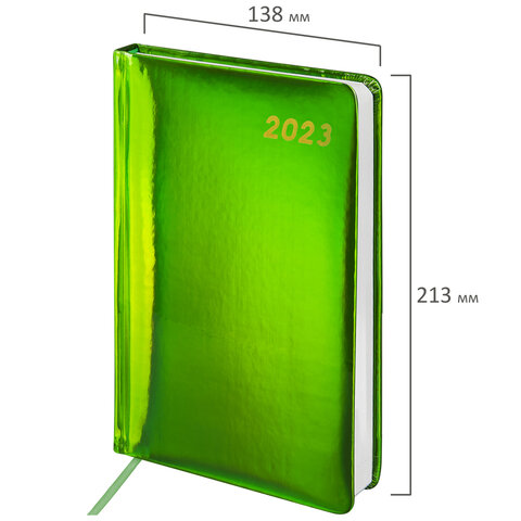 Ежедневник датированный 2023 А5 138x213 мм BRAUBERG "Holiday", под кожу, "зеркальный", зеленый, 114026
