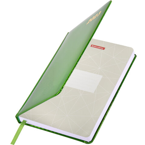 Внутренний блок включает 168 листов белой бумаги плотностью 70 г/м2. Каждая страничка имеет перфорированный угол. Благодаря стандартному формату А5 (138х213 мм) ежедневник удобно использовать как в офисе, так и на выездных деловых встречах. Твердая обложка стилизована под зеркальную кожу насыщенного зеленого цвета. Подходит для горячего тиснения. Дополнением является закладка-ляссе, с помощью которой при необходимости можно быстро открыть ежедневник на нужной странице. Помимо прочего, ежедневник снабжен справочным материалом.