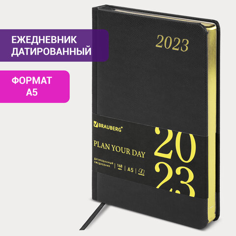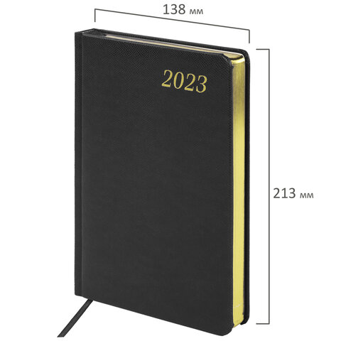 Ежедневник датированный 2023 А5 138x213 мм BRAUBERG "Iguana", под кожу, черный, 114029