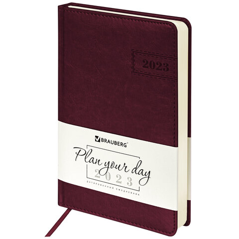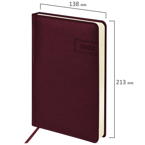 Ежедневник датированный 2023 А5 138x213 мм BRAUBERG "Imperial", под кожу, бордовый, 114033