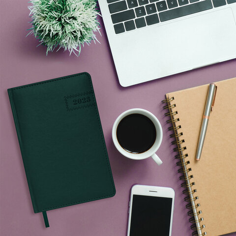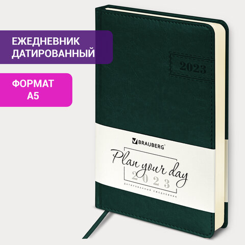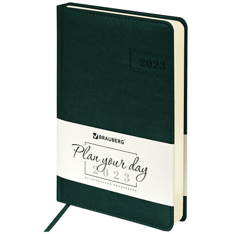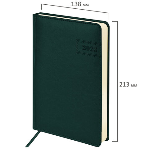 Ежедневник датированный 2023 А5 138x213 мм BRAUBERG "Imperial", под кожу, зеленый, 114039