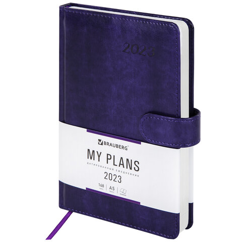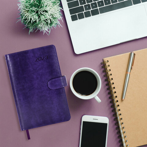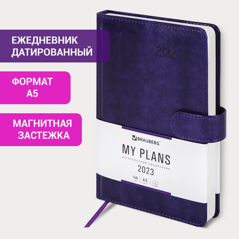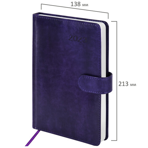 Ежедневник датированный 2023 А5 138x213 мм BRAUBERG "Legend", под кожу, фиолетовый, 114043