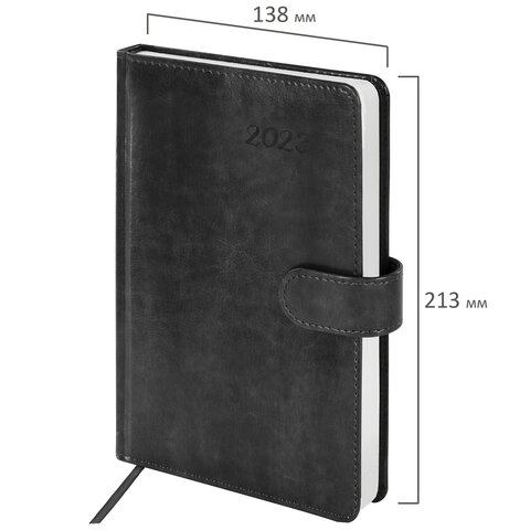 Ежедневник датированный 2023 А5 138x213 мм BRAUBERG "Legend", под кожу, серый, 114041