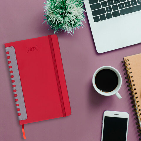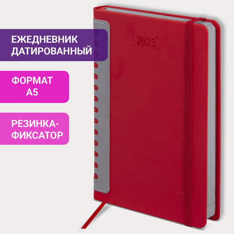 Ежедневник датированный 2023 А5 138x213 мм BRAUBERG "Original", бордо/серый, 114121