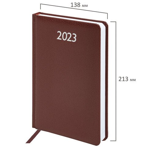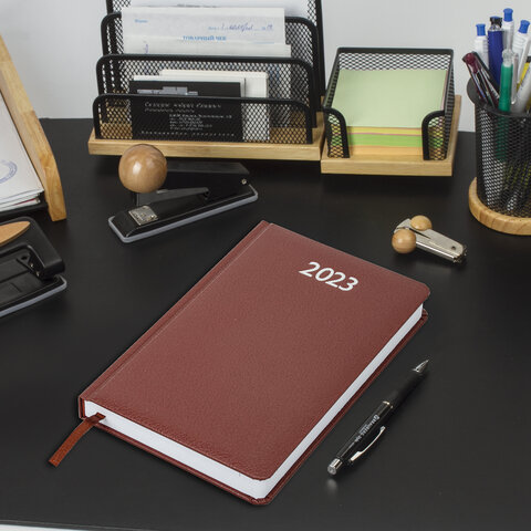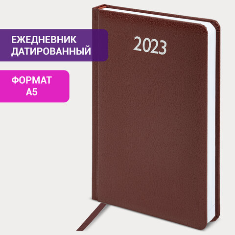 Ежедневник датированный 2023 А5 138x213 мм BRAUBERG "Profile", балакрон, коричневый, 114044