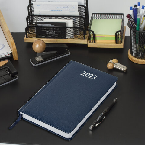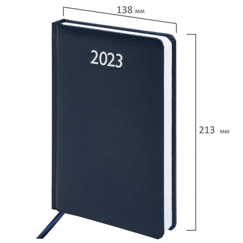 Ежедневник датированный 2023 А5 138x213 мм BRAUBERG "Profile", балакрон, синий, 114045