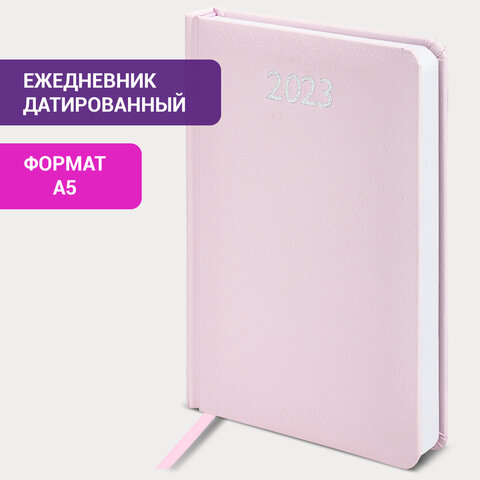 Ежедневник датированный 2023 А5 138x213 мм BRAUBERG "Profile", балакрон, светло-розовый, 114047