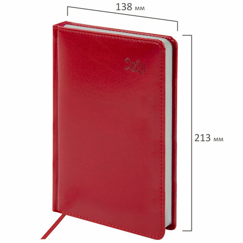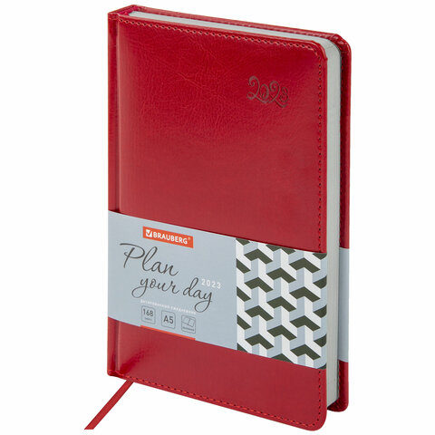 Ежедневник датированный 2023 А5 138x213 мм BRAUBERG "Rainbow", под кожу, красный, 114049