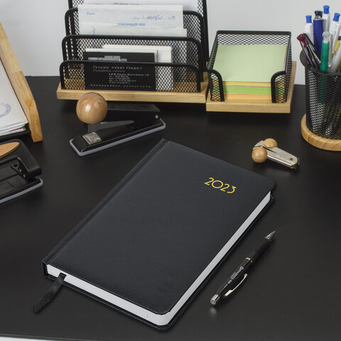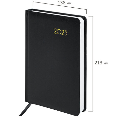 Ежедневник датированный 2023 А5 138x213 мм BRAUBERG "Select", балакрон, черный, 114056