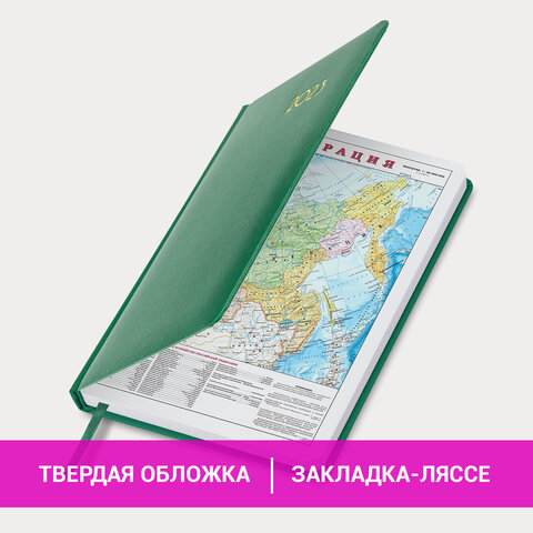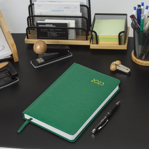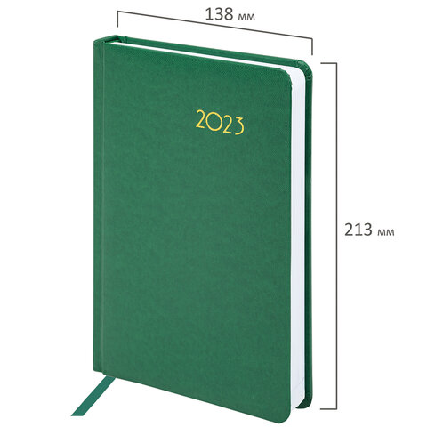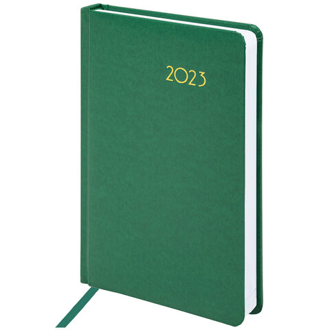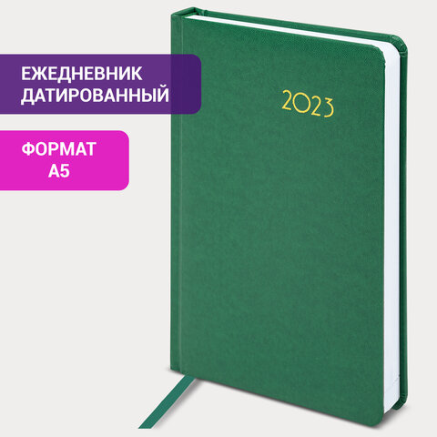 Ежедневник датированный 2023 А5 138x213 мм BRAUBERG "Select", балакрон, зеленый, 114057
