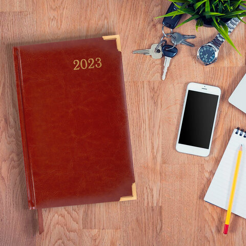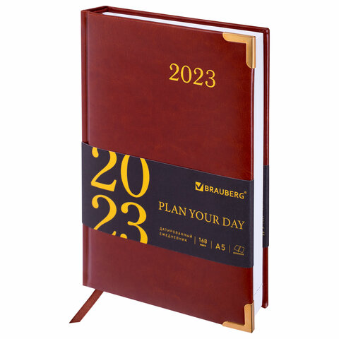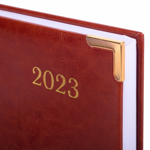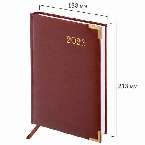 Ежедневник датированный 2023 А5 138x213 мм BRAUBERG "Senator", под кожу, коричневый, 114062