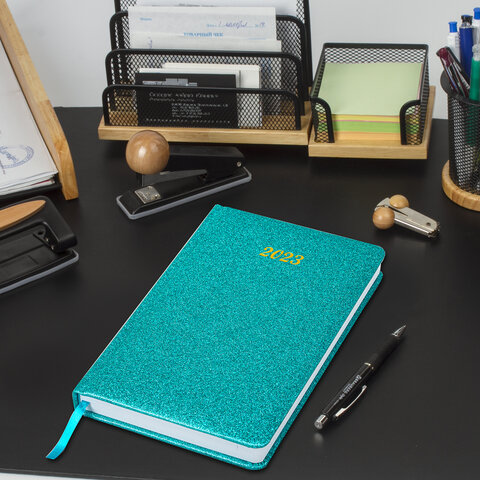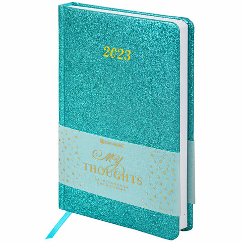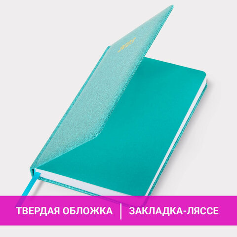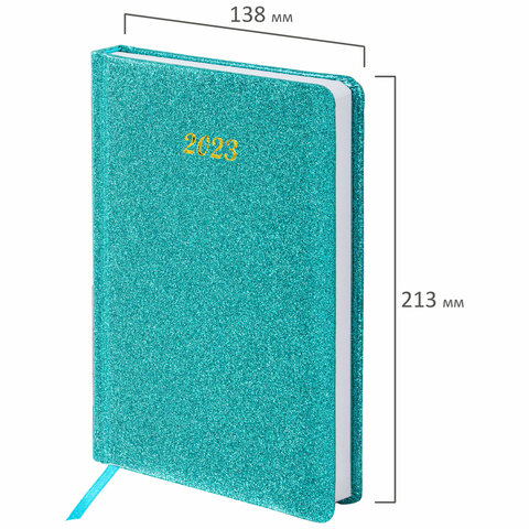 Ежедневник датированный 2023 А5 138x213 мм BRAUBERG "Sparkle", под кожу, блестки, бирюзовый, 114111
