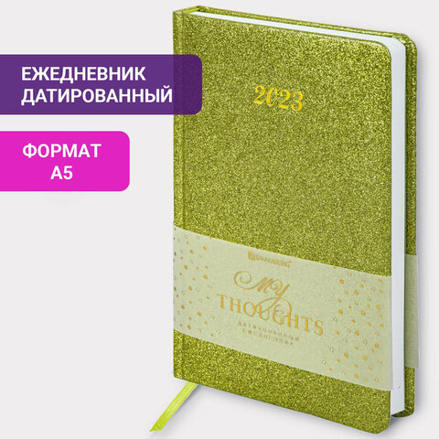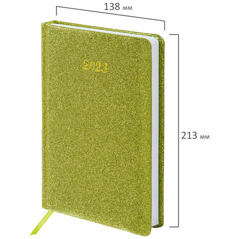 Ежедневник датированный 2023 А5 138x213 мм BRAUBERG "Sparkle", под кожу, блестки, зеленый, 114113