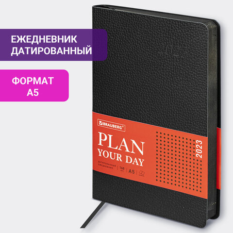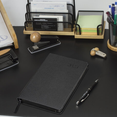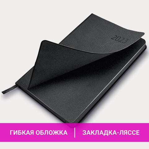Ежедневник датированный 2023 А5 138x213 мм BRAUBERG "Stylish", под кожу, черный, 114067