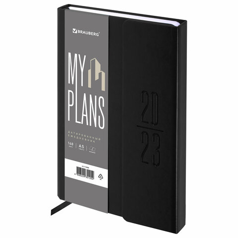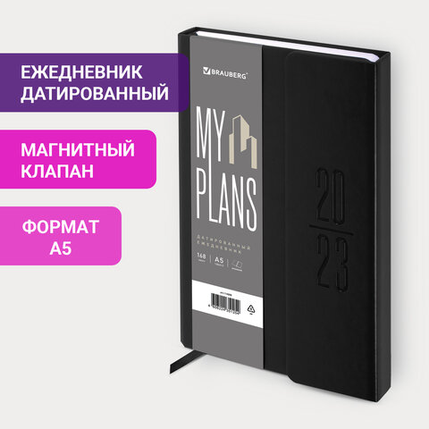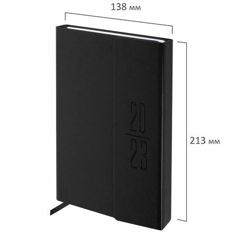 Ежедневник датированный 2023 А5 138x213 мм BRAUBERG "Towny", под кожу, клапан, черный, 114008