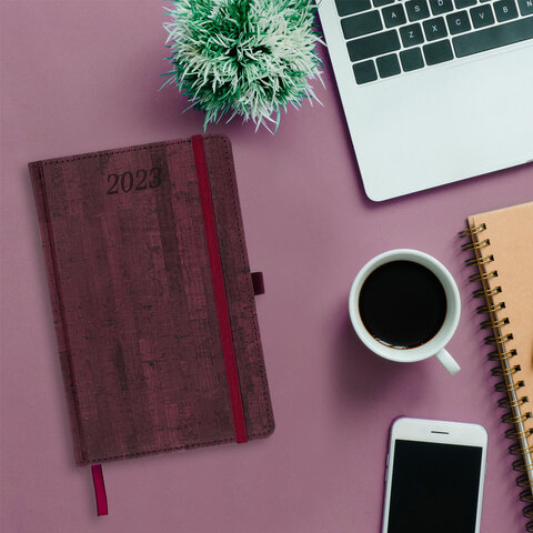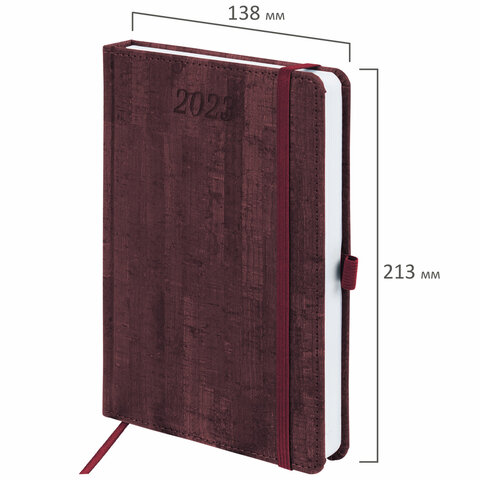 Ежедневник датированный 2023 А5 138x213 мм BRAUBERG "Wood", под кожу, бордовый, 114076
