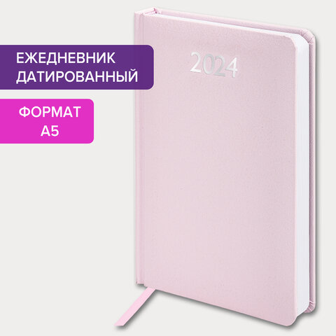 Ежедневник датированный 2024 А5 138x213 мм BRAUBERG "Profile", балакрон, светло-розовый, 114868