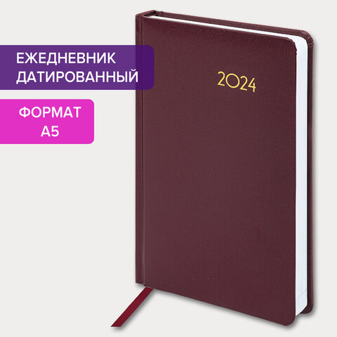 Ежедневник датированный 2024 А5 138x213 мм BRAUBERG "Select", балакрон, бордовый, 114879