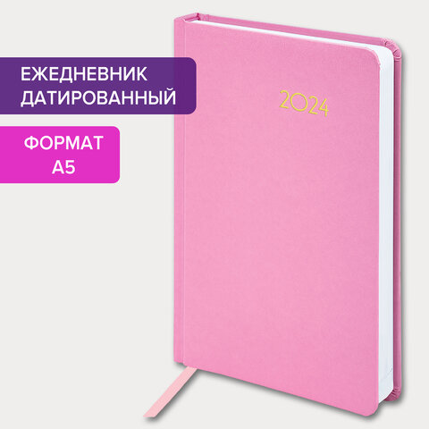 Ежедневник датированный 2024 А5 138x213 мм BRAUBERG "Select", балакрон, розовый, 114882