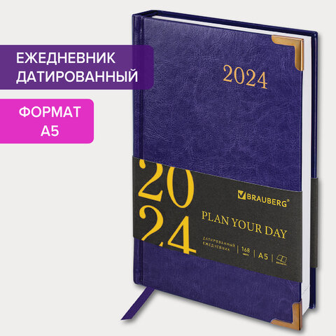 Ежедневник датированный 2024 А5 138x213 мм BRAUBERG "Senator", под кожу, фиолетовый, 114887