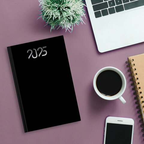 Ежедневник датированный 2025 145х215 мм, А5, STAFF, ламинированная обложка, "Black", 116026