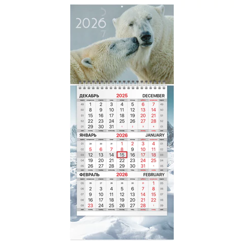 Календарь квартальный 2026 г., 1 блок, 1 гребень, бегунок, МИНИ, офсет, BRAUBERG, "Арктика", 116846