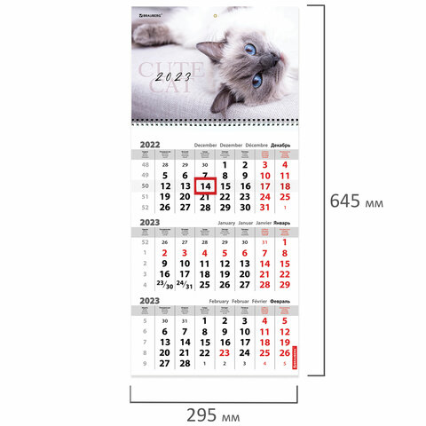 Квартальный календарь BRAUBERG "CUTE CAT" предназначен для делового планирования.