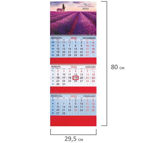 Календарь квартальный на 2023 г., 3 блока, 3 гребня, с бегунком, офсет, "LAVENDER", BRAUBERG, 114227