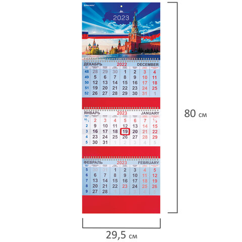 Календарь квартальный на 2023 г., 3 блока, 3 гребня, с бегунком, "РОССИЯ", BRAUBERG, 114238