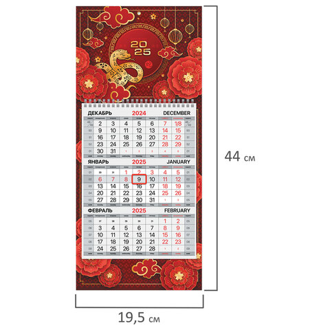 Календарь квартальный на 2025 г., 1 блок, 1 гребень, с бегунком, МИНИ, офсет, BRAUBERG, "Символика года", 116117