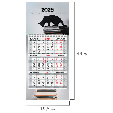 Календарь квартальный на 2025 г., 1 блок, 1 гребень, с бегунком, МИНИ, офсет, BRAUBERG, "Smart cat", 116123